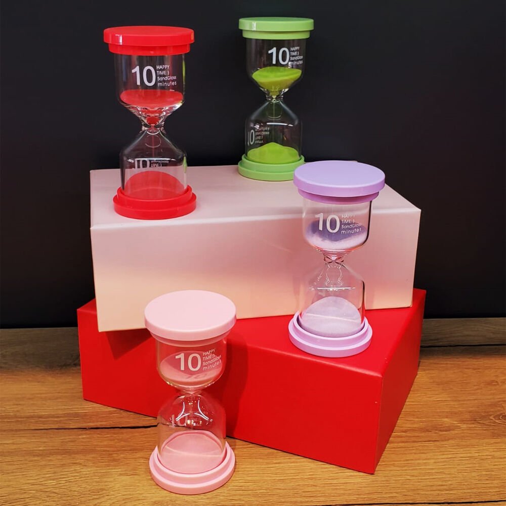 10 dakikalık kum saati, kaliteli cam ve dayanıklı plastik malzemeden üretilmiştir. Şık tasarımı sayesinde hem işlevsel hem de dekoratif bir üründür. Evde, ofiste ya da çalışma masasında zaman ölçer olarak kullanılabileceği gibi estetik bir aksesuar olarak da değerlendirilebilir.