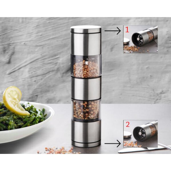 2'Sİ 1 ARADA AKRİLİK EL DEĞİRMENİÜrün Özellikleri2’si 1 Arada Akrilik El Değirmeni, çift hazneli tasarımı sayesinde tuz ve karabiberi aynı öğütücüde kullanma imkanı sunar. Şeffaf akrilik gövdesi, içerisindeki baharatları kolayca görmenizi sağlar. Tek elle pratik öğütme mekanizması ile kullanım kolaylığı sunar. Kompakt ve ergonomik yapısı sayesinde mutfağınızda fazla yer kaplamaz. Dayanıklı malzemeden üretilmiş olup uzun ömürlü kullanım sağlar. Kolay temizlenebilir yüzeyiyle hijyenik bir deneyim sunar. Paket İçeriği1 Adet 2’si 1 Arada Akrilik El Değirmeni