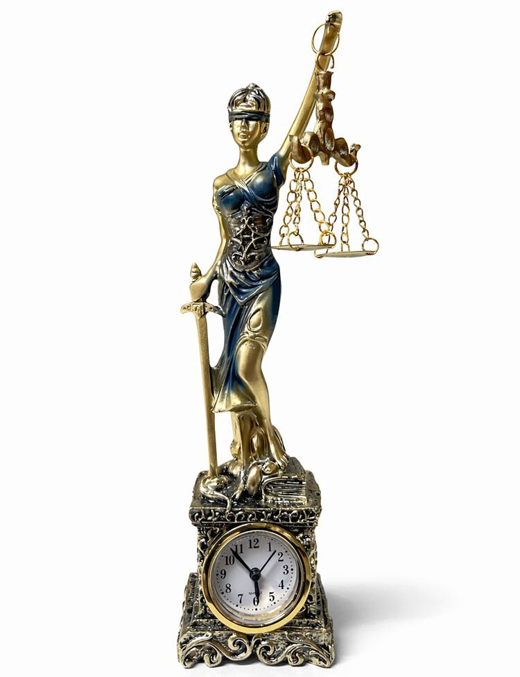 Adalet figürü ve entegre masa saati