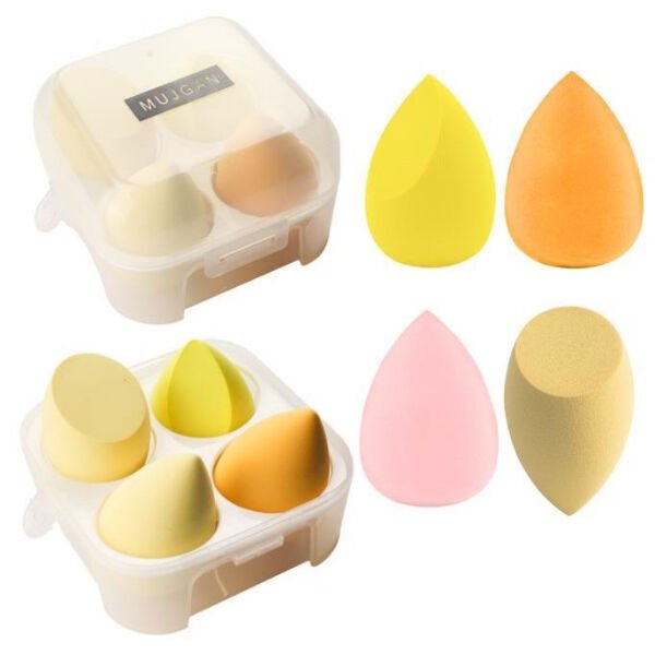 4 adet armut form makyaj süngeri ve 1 adet kapaklı saklama kutusu