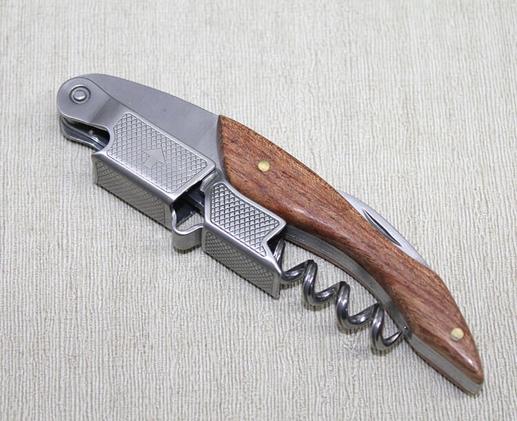 Ahşap Paslanmaz Çelik Tirbuşon Açacak
