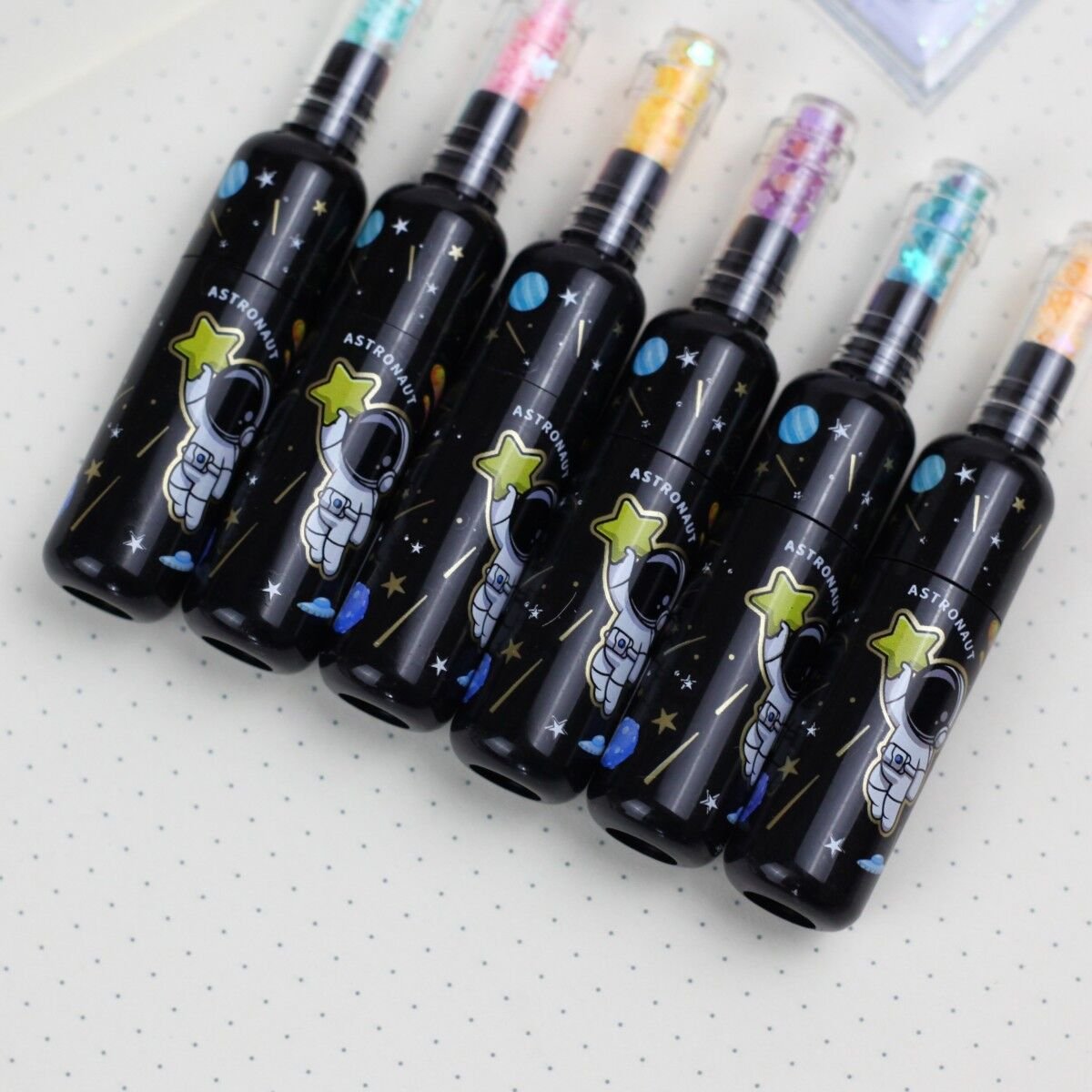 ASTRONOT FOSFORLU KALEM SETİPaket içerisinden 6 adet astoronot tasarımlı farklı renklere sahip fosforlu kalem çıkmaktadır.Sıran fosforlu kalemlerden farklı tasarımı ile oldukça dikkat çekmektedir.Paket İçeriği1 set 6 adet astronot fosforlu kalem seti