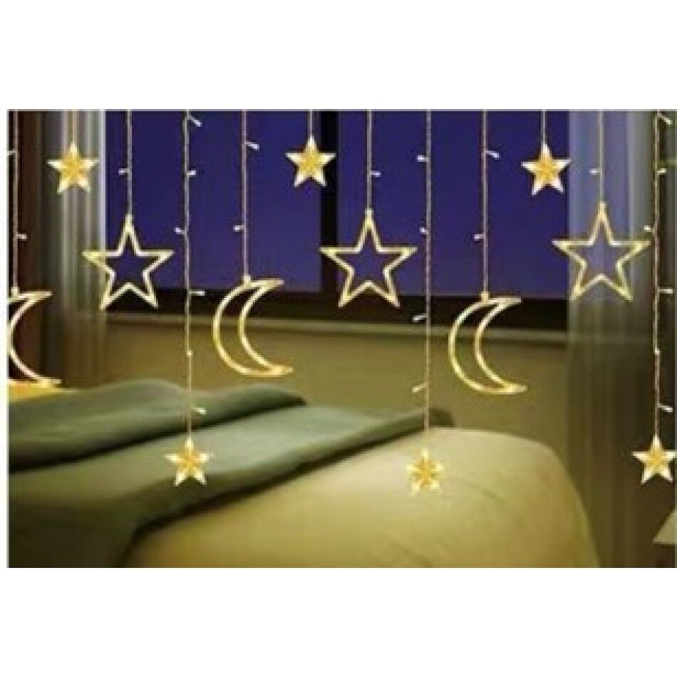 1 adet ay yıldız perde LED gün ışığı 12 saçaklı