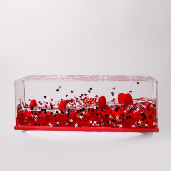 Batmayan kalpli güllü akvaryum hediyelik, romantik ve anlamlı tasarımıyla özel günlerde sevdiklerinize unutulmaz bir hediye alternatifi sunar. Şeffaf akvaryum görünümüne sahip bu dekoratif ürün, su içerisinde batmadan duran kırmızı kalpler ve güller sayesinde göz alıcı bir görsellik oluşturur. İç mekân dekorasyonunda sehpa, masa, vitrin veya raf üzerinde rahatlıkla kullanılabilir ve bulunduğu ortama sıcak, romantik bir hava katar. Estetik detayları sayesinde Sevgililer Günü, evlilik teklifi, yıl dönümü, doğum günü ve özel sürprizler için ideal bir seçimdir. Dayanıklı yapısı uzun süreli kullanım imkânı sunarken, bakım gerektirmeyen dekoratif formu ile zahmetsiz bir şekilde sergilenebilir. Hediyelik olarak tercih edildiğinde duygusal değeri yüksek, şık ve dikkat çekici bir ürün olarak öne çıkar.