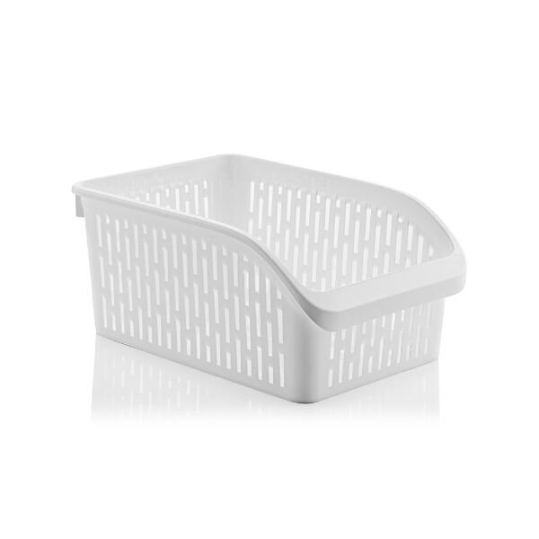 Büyük Boy Dolap İçi Düzenleyici, dolap ve raf içlerinde pratik depolama alanı oluşturmak için tasarlanmış fonksiyonel bir organizer modelidir. 20x29x13 cm ölçüsü sayesinde geniş iç hacim sunarak mutfak, banyo, kiler ve gardırop düzeninde etkili bir çözüm sağlar. Dayanıklı plastik yapısı ile uzun süreli kullanıma uygundur ve formunu korur. Yan yüzeylerindeki hava geçirgen tasarım sayesinde içindeki ürünlerin hava almasına yardımcı olur. Açık ön kısmı sayesinde ürünlere kolay erişim imkânı sunar ve günlük kullanımda pratiklik sağlar. Dolap içi düzenleyici yapısı ile dağınıklığı ortadan kaldırır, plastik organizer formu sayesinde hafif ve taşınabilirdir. Kompakt fakat geniş hacimli tasarımı ile raf düzenleyici sepet olarak farklı alanlarda rahatlıkla kullanılabilir. Modern ve sade görünümü ile dolap içlerinde düzenli ve temiz bir görüntü oluşturur.