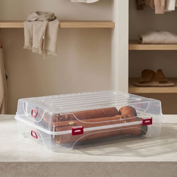 Ürün ÖzellikleriÇizme Saklama Kutusu, ayakkabı dolaplarınızda düzen sağlamak ve uzun yapılı çizmelerinizi dış etkenlerden korumak için mükemmel bir çözümdür. 61x37x14 cm boyutlarındaki geniş ve uzun formlu tasarımı, çizmelerin katlanmadan, formunu bozmadan saklanmasına olanak tanır. Kristal berraklığındaki şeffaf gövde yapısı, kutuyu açmanıza gerek kalmadan içerisindeki ayakkabıyı kolayca tespit etmenizi sağlar. Yan kısımlarda bulunan kilitli kapak mekanizması, kutunun güvenli bir şekilde kapanmasını sağlayarak toz, nem ve koku girişini engeller. Üst üste istiflenebilir özelliği sayesinde dolap içlerinde veya yatak altlarında maksimum yer tasarrufu sağlar. Dayanıklı ve sağlığa uygun plastik materyalden üretilen bu çok amaçlı saklama kutusu, sadece ayakkabılar için değil, tekstil ürünleri veya ev aksesuarlarını organize etmek için de idealdir. Hijyenik ve şık tasarımıyla bu şeffaf düzenleyici, yaşam alanlarınızdaki karmaşayı sonlandırarak eşyalarınızın ömrünü uzatır.