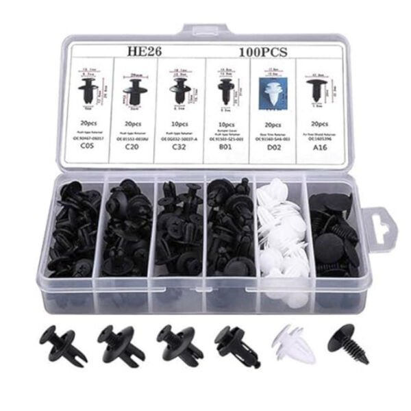 100 parça çok amaçlı plastik bağlantı klipsi ve perçin seti