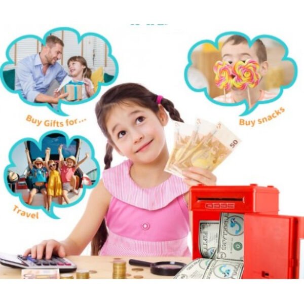Elektronik şifreli kasa otomatik ATM kumbara, çocukların tasarruf bilincini eğlenceli bir şekilde kazanmalarına yardımcı olur. Bankamatik tarzı tasarımıyla kağıt paraları otomatik olarak içine çeker, madeni paralar için özel bir yuvası bulunur. Şifreli güvenlik sistemi sayesinde yalnızca doğru şifre girildiğinde açılır (varsayılan şifre 0000’dır). 19,2 x 13,8 x 13,2 cm ölçülerindeki bu kumbara, 3 adet AA pil ile çalışır (piller pakete dahil değildir). Üzerindeki ışıklı tuş takımı ve sesli geri bildirim özelliği, çocuklar için hem eğlenceli hem öğretici bir deneyim sunar. Kaliteli plastik gövdesi dayanıklıdır ve uzun ömürlü kullanım sağlar. Renk seçimi yapılamaz, görseldeki pembe veya mavi renklerden karışık olarak gönderilir.
