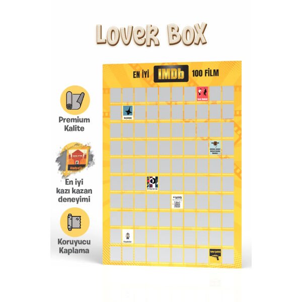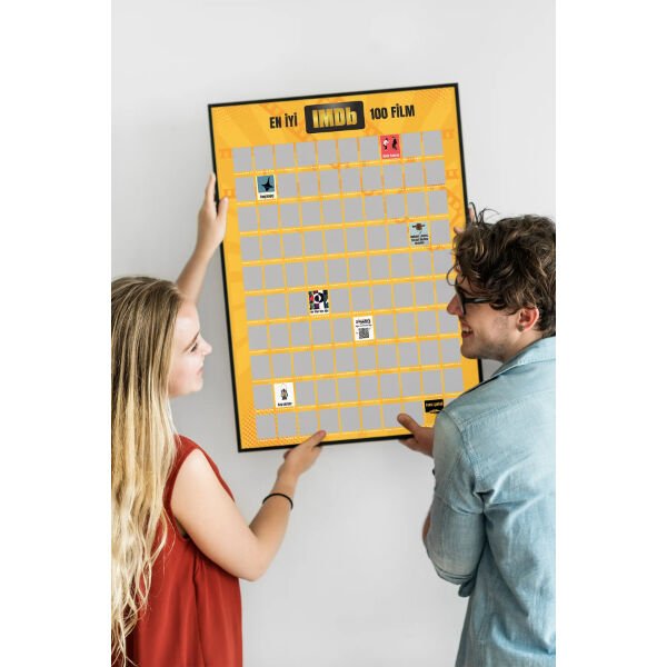En İyi IMDb 100 Film Kazı Kazan Posteri, sinema tutkunları için özel olarak tasarlanmış, interaktif bir kültürel rehberdir. Sinema tarihine damga vurmuş, eleştirmenlerden tam not almış ve IMDb listelerinin zirvesinde yer alan en iyi 100 filmi tek bir tabloda bir araya getiriyor. Premium kalitede kuşe kağıt üzerine uygulanan özel koruyucu kaplama, uzun ömürlü bir kullanım sunarken; gümüş kazınabilir katman her filmden sonra pürüzsüz bir kazıma deneyimi vaat eder. İzlediğiniz her başyapıtın ardından ilgili kareyi kazıyarak, o filme özel tasarlanmış renkli ve ikonik görseli ortaya çıkarabilirsiniz. "En İyiler Senin Duvarında" sloganıyla sunulan bu interaktif poster, sadece bir izleme listesi değil, aynı zamanda eviniz veya ofisiniz için modern bir dekoratif tablo niteliğindedir. Sinema bilginizi sınayacağınız, yeni başyapıtlar keşfedeceğiniz ve film izleme deneyiminizi bir koleksiyon oyununa dönüştüreceğiniz bu ürün, film severler için eşsiz bir motivasyon kaynağıdır. Şık silindir kutusuyla gönderilen bu poster, sevdikleriniz için prestijli ve unutulmaz bir hediyelik eşya seçeneği olarak öne çıkar.