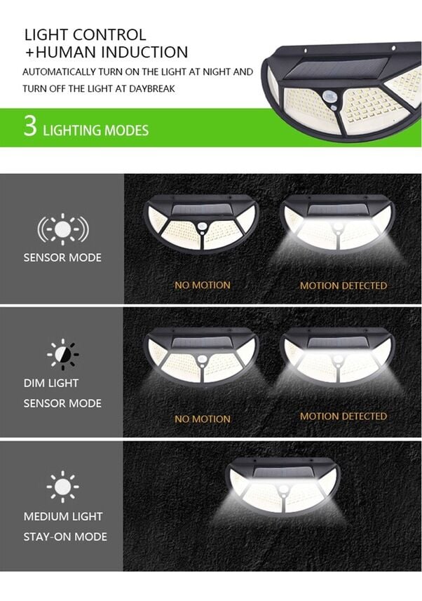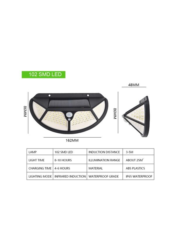 Fonksiyonel Sensörlü 102 Ledli Solar Bahçe Lambası