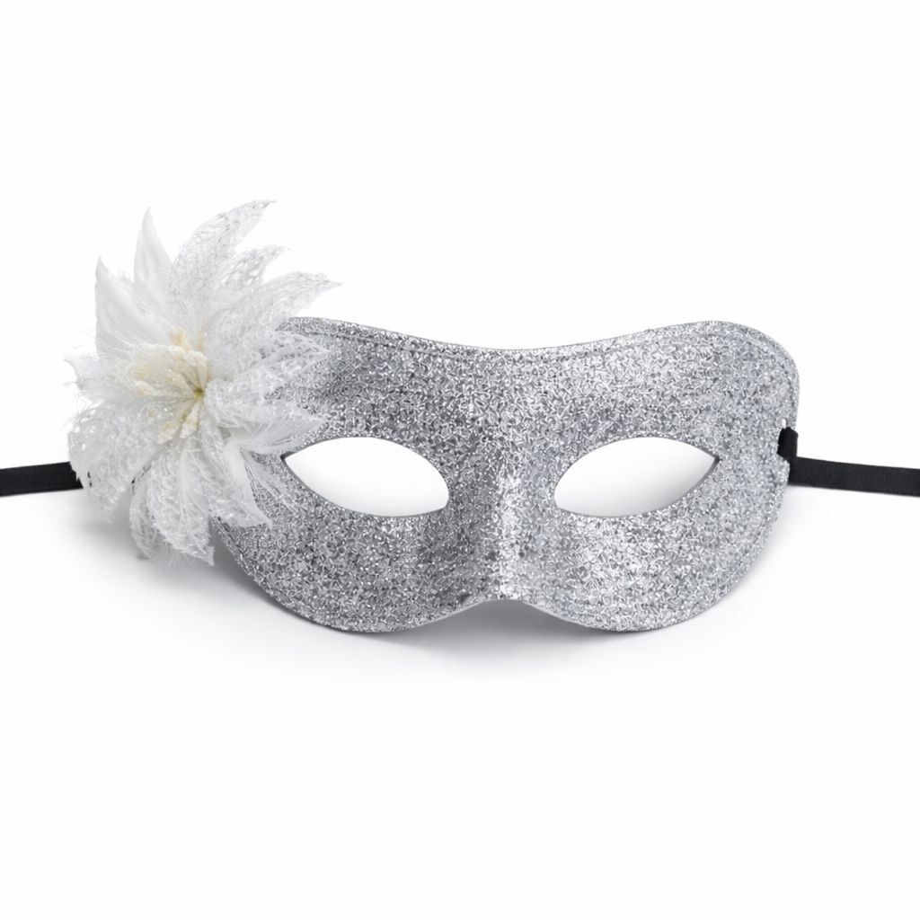 GÜMÜŞ SİMLİ TÜYLÜ BALO MASKESİ