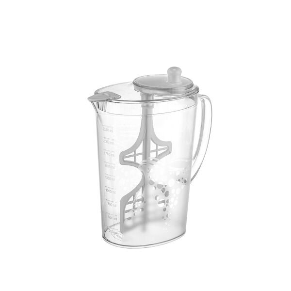 Ürün ÖzellikleriKarıştırıcılı Sürahi, içecek hazırlama sürecini tek bir kapta birleştiren yenilikçi ve fonksiyonel bir mutfak gerecidir. Ürünün en dikkat çekici özelliği olan entegre karıştırma aparatı, kapağı açmadan ayran, limonata veya toz içecekleri saniyeler içinde homojen hale getirmenizi sağlar. Gövde üzerinde yer alan mililitre bazlı ölçü çizgileri, tariflerinizi hazırlarken tam kıvamında sonuçlar almanıza yardımcı olur. 2,25 litrelik geniş hacmi ve kristal berraklığındaki şeffaf tasarımı ile hem hazırlık hem de servis aşamasında büyük kolaylık sunar. Ergonomik tutma sapı ve damlatma yapmayan ağız yapısı, güvenli ve temiz bir kullanım deneyimi sağlar. Yüksek kaliteli, sağlığa uygun plastik materyalden üretilen bu karıştırıcılı sürahi, dayanıklı yapısı ve şık formuyla modern mutfakların en pratik yardımcılarından biri olmaya adaydır.