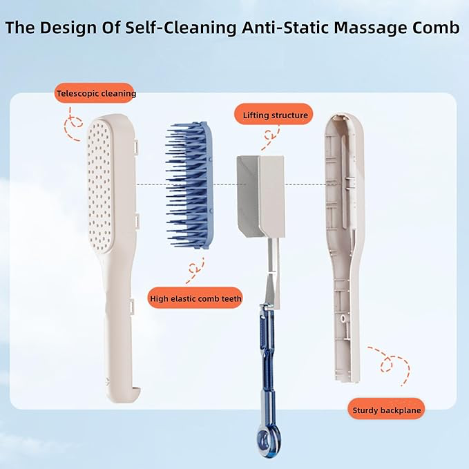 KENDİNİ TEMİZLEYEN SAÇ TARAĞI"Saçınıza Hak Ettiği Bakımı Verin - Her Tarakta Spa Hissi!"Kendi Kendini Temizleyen Anti-statik Masaj Tarağı:- Masaj Özelliği: Bu tarak, kafa derisine masaj yapabilen ve saçı nazikçe tedavi edebilen küçük yuvarlak parçacıklara sahiptir. Bu özellik sayesinde rahatlatıcı bir spa benzeri deneyim sunar.Ergonomik Tasarım:- Kullanım Kolaylığı: Basit ve şık bir görünüme sahip olan tarak, buzlu bir dokuya sahiptir ve ergonomik tutamağı ile rahat ve keyifli bir tarama deneyimi sağlar.Kullanımı Kolay:- Hızlı Temizlik: Geri çekilebilir döner kaldırma mekanizması sayesinde tarak, 1 saniyede saçları temizler. Sadece kolu döndürerek hava yastığının tüm saç ve döküntüleri serbest bırakmasını sağlayabilirsiniz. Bu özellik kepek ve kuru saç derisini tedavi ederek kafa derisi sağlığını ve saç büyümesini destekler.Tüm Saç Tipleri için Uygun:- Çok Yönlülük:Saça nazikçe nüfuz eder, en düğümlü düğümleri kolayca çözer ve tüm saç tiplerine uygundur. Düz saçlar, kıvırcık saçlar, ince saçlar, kalın saçlar, zarar görmüş saçlar, peruk ve uzatılmış saçlar için ideal bir taraktır.Kullanım Alanları- Günlük Kullanım: Her türlü saç tipi ve ihtiyacı için günlük kullanıma uygun.- Saç Bakımı ve Şekillendirme: Hem saç bakımında hem de saç şekillendirmede rahatlıkla kullanılabilir.- Masaj ve Rahatlama:Kafa derisine masaj yaparak rahatlama ve konfor sağlar.Paket İçeriği1 adet kendini temizleyen saç tarağı