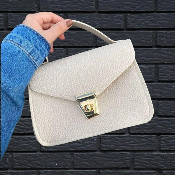 1 Adet Krem Rengi Kutu El Çantası