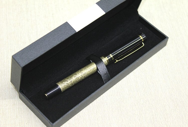 Kutulu Tekli Tükenmez Kalem Model 27, siyah ve altın tonlarının uyumunu özel desenli gövde tasarımıyla birleştiren dikkat çekici bir modeldir. Gövde üzerinde yer alan işlemeli altın desen detayı kaleme klasik ve karakteristik bir görünüm kazandırırken, siyah üst bölüm modern ve dengeli bir kontrast oluşturur. Parlak metal klips ve altın halka detayları ürüne prestijli bir hava katar. Dengeli yapısı sayesinde rahat bir tutuş sağlayan bu metal tükenmez kalem, hem günlük kullanım hem de resmi ortamlarda tercih edilebilecek şık bir seçenektir. Özel sert kapaklı kutusu ile sunulan kutulu şık kalem, kurumsal hediyelik olarak değerlendirilebilecek zarif bir alternatiftir. Estetik ve klasik çizgileri bir araya getiren hediyelik tükenmez kalem modeli, ofis masalarında güçlü bir stil tamamlayıcısıdır.
