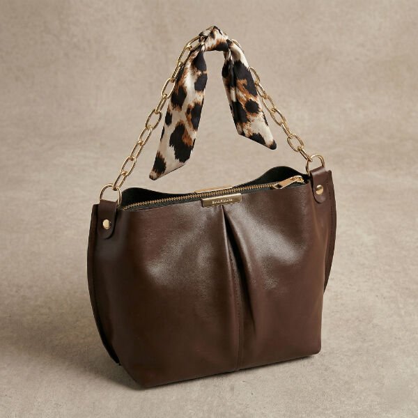 Leopar Desenli Fular Detaylı Kahverengi Çanta