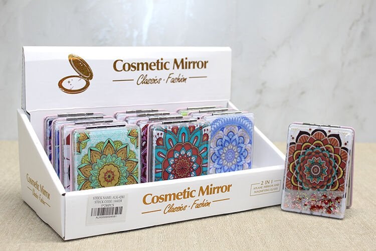 Mandala Desenli Hareketli Sulu El Aynası - Model 4, dış yüzeyinde yer alan sulu ve simli kapak tasarımıyla estetik ve dikkat çekici bir görünüm sunan dekoratif bir cep aynasıdır. Mandala desenli ön yüzeyi detaylı ve sanatsal bir karakter taşırken, kapak içindeki hareketli simli sıvı yapı ürüne dinamik bir görünüm kazandırır. Klasik aynalardan ayrılan hareketli sulu simli kapak tasarımı sayesinde hem görsel hem de dekoratif açıdan farklı bir alternatif sunar. Günlük kullanım için pratik bir mandala desenli el aynası seçeneği olan bu model, kompakt yapısıyla çanta içinde rahatlıkla taşınabilir. 8,5x6 cm ölçüsü sayesinde elde kolay tutulur ve fazla yer kaplamaz. Görselde yer alan modellerden biri karışık olarak gönderilir. Zarif tasarımıyla öne çıkan bu ürün, özel günlerde tercih edilebilecek şık bir hediyelik cep aynası alternatifi sunar.