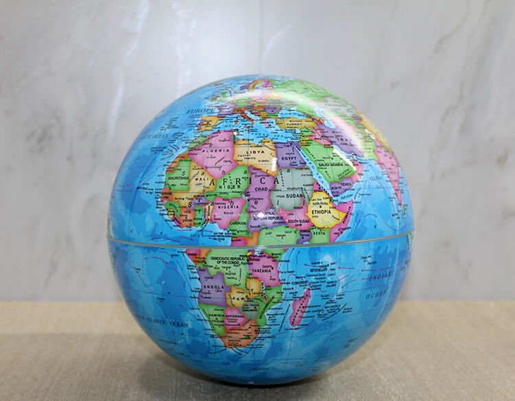 Masaüstü Dönen Dünya Küre - Model 8, 20 cm çapıyla hem dekoratif hem de dikkat çekici bir masaüstü aksesuarıdır. Canlı mavi okyanus zemini ve renkli kıta detayları sayesinde harita görünümü oldukça net ve belirgindir. Büyük boyutlu yapısı, çalışma masalarında ve ofis alanlarında güçlü bir görsel etki oluşturur. Serbest dönebilen mekanizması sayesinde küre rahatlıkla çevrilebilir ve hem eğitici hem estetik bir kullanım sunar. Dengeli taban yapısı sayesinde masa üzerinde sabit durur ve konforlu bir kullanım sağlar. Harita detaylarının canlı renklerle tasarlanmış olması ürünü özellikle eğitim alanında da tercih edilebilir hale getirir. Geniş çapı sayesinde dekorasyonda daha iddialı bir görünüm isteyenler için ideal bir masaüstü dünya küresi seçeneğidir. Aynı zamanda hem ev hem ofis ortamlarında kullanılabilecek şık bir büyük boy dönen dünya küre alternatifidir.