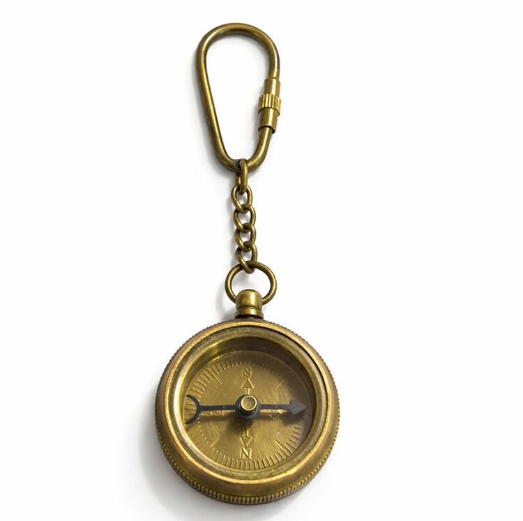 Nostaljik Pirinç Pusula Figürlü Anahtarlık