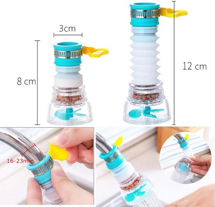 Musluk başlığı yumuşak hortum sayesinde uzatılabilir ve suyu hedeflenen yöne boşaltmak için 360 derece döndürülebilir. Böylece mutfak lavabolarının temizliği kolaylaşır ve temizlik alanı yayılır.Duş çıkışlı musluk püskürtme başlığı su akışının darbesini azaltır. Su sıçramasını önler ve %30 - %70 su tasarrufu sağlar.Musluk filtresi aktif mineral taşlar içerir. İnciler su temizliği için kullanılır ve bakterilere güçlü bir etkisi vardır. 16 – 23 mm çaplı musluğa uyar. Hortum kelepçesi ile kolayca sabitlenir, sıkı ve kaymaz. Hem sıcak hem de soğuk su kabul edilebilir.Renk: MAVİ ,YEŞİL,PEMBESTOK DURUMUNA GÖRE KARIŞIK RENK GÖNDERİLECEKTİR