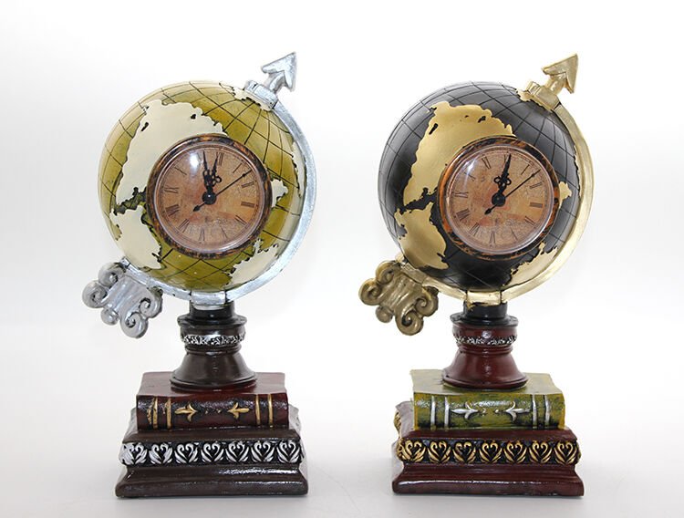 Polyester Saatli Dünya Küre, klasik dünya küresi tasarımını masa saati fonksiyonuyla birleştiren dekoratif ve işlevsel bir masaüstü aksesuarıdır. Antik eskitme görünümlü detayları, işlemeli kaide yapısı ve üst kısmındaki küre formu ile bulunduğu ortama nostaljik ve prestijli bir hava katar. Ön yüzeyde yer alan analog saat mekanizması sayesinde hem zamanı takip edebilir hem de dekoratif bir obje olarak kullanabilirsiniz. Polyester malzemeden üretilmiş sağlam gövdesi, detaylı işçilik görünümü sunar ve masa üzerinde dengeli bir duruş sağlar. Ofis masalarında, çalışma alanlarında, kitaplık raflarında ve klasik dekorasyon tarzına sahip mekanlarda dikkat çekici bir tamamlayıcıdır. Hem dekoratif hem fonksiyonel yapısıyla öne çıkan bir saatli masaüstü dünya küresi seçeneğidir. Klasik tasarım sevenler için şık bir dekoratif polyester dünya küre saat alternatifidir. Görselde yer alan iki modelden biri karışık olarak gönderilmektedir.