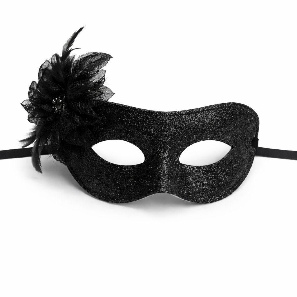 1 Adet Siyah Simli Tüylü Balo Maskesi