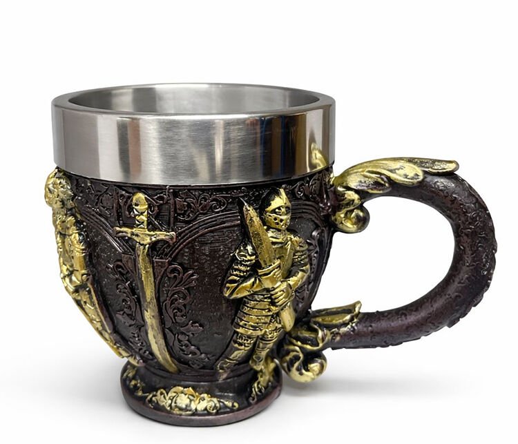 Şövalye Kabartmalı 3D Paslanmaz Çelik Kupa Bardak