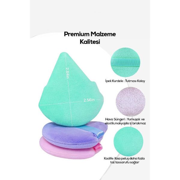 Üçgen makyaj süngeri puf, ten makyajını daha kontrollü ve pratik şekilde uygulamak için tasarlanmış çok yönlü bir makyaj aksesuarıdır. Özel üçgen formu sayesinde göz çevresi, burun kenarları ve çene gibi detaylı bölgelerde hassas uygulama imkânı sunar. Sivri uç kısmı dar alanlara kolayca ulaşırken, geniş ve dairesel yüzeyi yanaklar, alın ve diğer geniş bölgelerde fondötenin eşit şekilde dağıtılmasına yardımcı olur. Üçgen makyaj süngeri tasarımı sayesinde hem detay hem de geniş alan uygulamalarında tek ürünle etkili sonuç elde edilebilir. Yumuşak dokulu yüzeyi cilt üzerinde konforlu bir kullanım sunar ve makyajın daha pürüzsüz görünmesine katkı sağlar. Arka kısmında bulunan elastik bant sayesinde ele rahatça oturur ve kontrollü kullanım imkânı verir. Puf makyaj süngeri yapısı ile ürünün her iki tarafı da kullanılabilir, bu sayede pratik ve uzun süreli kullanım sağlar. Günlük makyajdan profesyonel uygulamalara kadar farklı ihtiyaçlara uygun olan detay uygulama makyaj süngeri, makyaj çantanızın vazgeçilmez yardımcılarından biri olmaya adaydır.