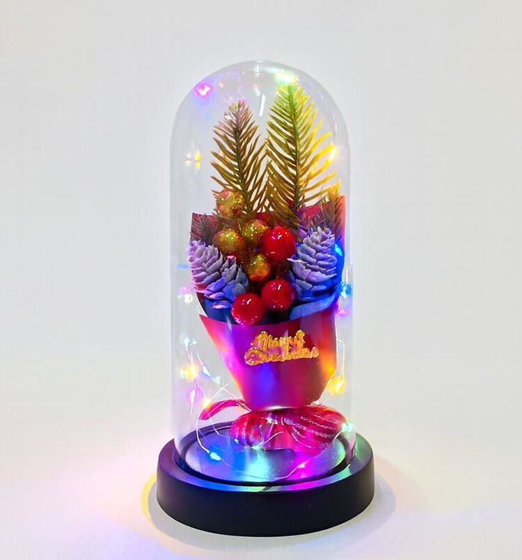 1 Adet Yılbaşı Temalı Işıklı Dekoratif Cam Fanus - Model 3