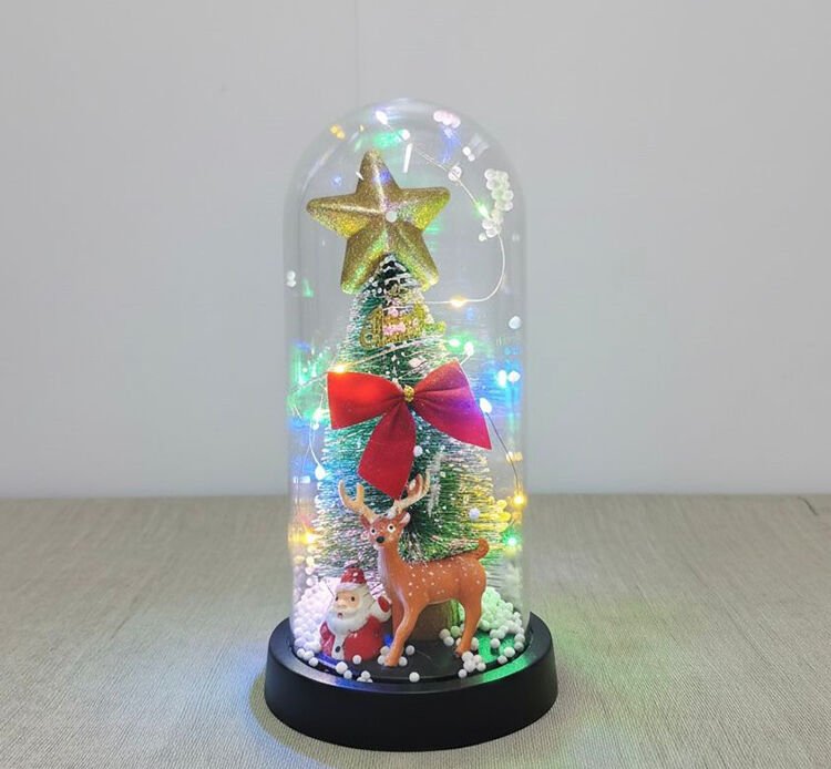 Yılbaşı Temalı Işıklı Dekoratif Cam Fanus - Model 5