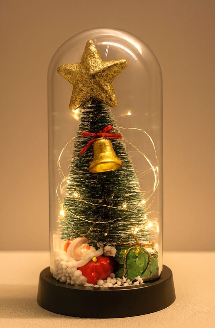 Yılbaşı Temalı Işıklı Dekoratif Cam Fanus - Model 6